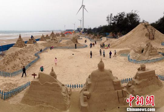 4月25日,首届映像闽南沙雕艺术节在福建省漳浦县六鳌翡翠湾拉开帷幕,吸引游人络绎不绝前来参观游览。本届沙雕艺术节分3大沙雕组合、36个单体作品,整个沙雕群占地规模达22000平方米,是福建省内规模最大的沙雕艺术园,既有郑成功、陈嘉庚、妈祖、陈元光等历史名人单体沙雕,也有欧式建筑、童话故事、神话故事等组合作品,充分展示以“问古千年、对话两岸”为主题的闽南印象文化精粹。