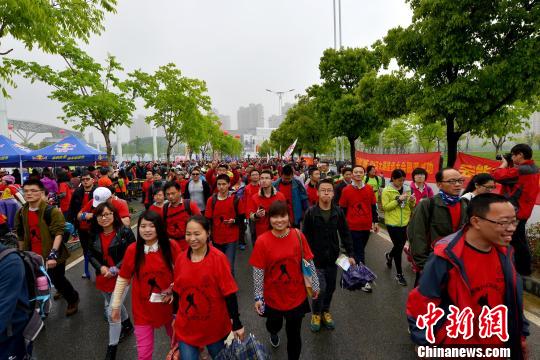 走在绿荫道上的徒步爱好者们。 李一芳 摄