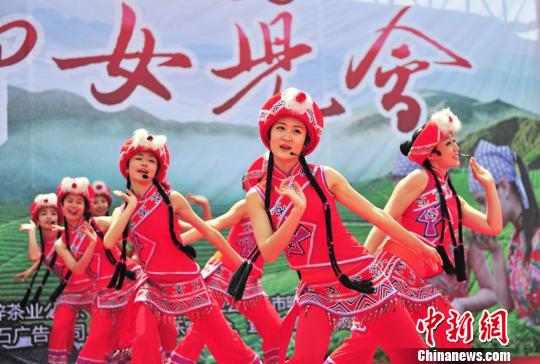 湖北宜都市潘家湾土家族乡近日举行“土家女儿会”文化传承活动。活动中,该乡的青年男女表演了具有土家特色的“抛香囊”、“山歌对唱”、“茶山情歌”等文艺节目。与此同时,有10多对土家族青年男女现场收获了爱情。据了解,“土家女儿会”距今已有400多年历史,是土家族青年追求自由婚姻,以择偶为主要目的的节日盛会。