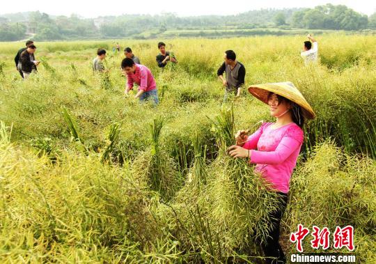 4月28日,湖南永州市道县五洲万亩“油稻稻”示范基地,农民正在抢收油菜籽。据悉,该基地首席技术指导为中国油菜遗传育种和栽培专家官春云院士。通过几年的示范带动,道县去年利用晚稻收获后和今年早稻插播前的空闲农田,种植油菜12.3万亩,既可助农增收,还可改善土壤肥力。