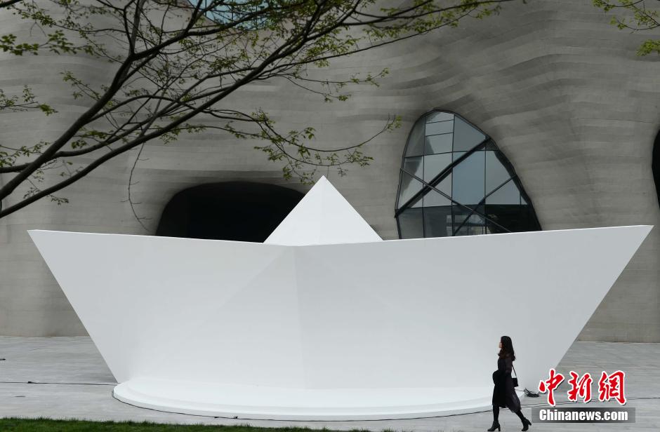 4月29日,一只长15.3米宽5.2米,名为“青春号”的巨大“纸船”亮相上海证大喜玛拉雅艺术中心广场,吸引了诸多行人驻足观看。据悉,主办方设置这只巨大的“纸船”旨在唤醒70、80后的童年记忆,回味美好过往。到了晚上,“纸船”会化身露天影院为观众播放青春题材电影。中新社发 赖鑫琳 摄