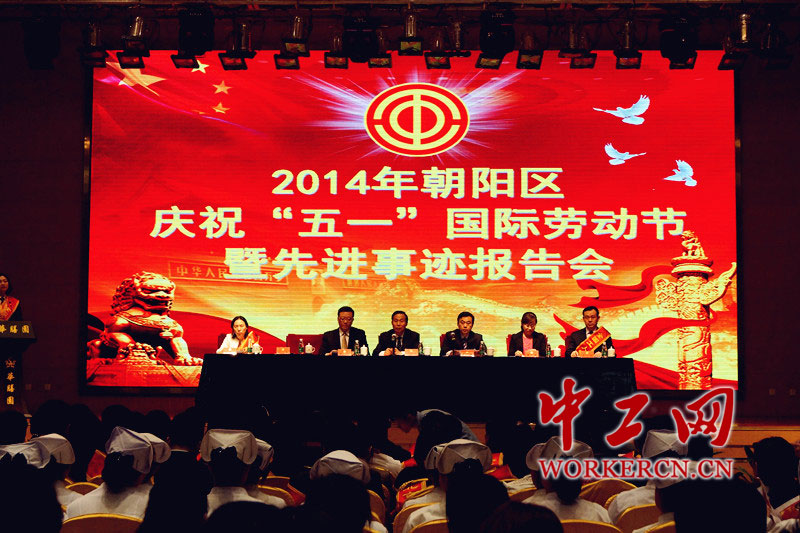 2014年4月29日,朝阳区总工会庆祝“五一”国际劳动节暨先进事迹报告会在华膳园饭店召开。中工网记者 葛姗 摄