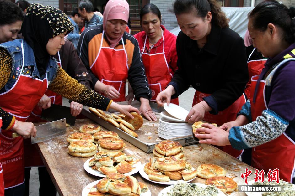 4月29日,西安市莲湖区在位于北院门街道的民族社区学习巷社区举办了以“传承家风·大家赞”为主题的第五届邻里节“百家宴”活动。来自当地30个家庭的代表晒出了“家风感言”,社区居民也纷纷烹制拿手好菜,与大家共享。田进 摄