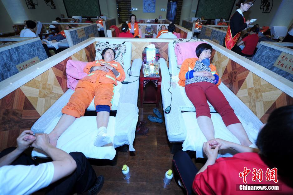 武汉一家足疗店为环卫工人洗脚