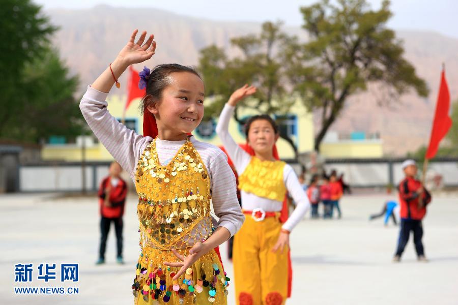 4月28日,西路军红军小学学生在表演民族舞蹈《撒拉阿娜一朵花》。当日,青海省海东市循化撒拉族自治县红光村西路军红军小学学生为“五四”青年节排练舞蹈。这所最早由红军西路军战士修建,后经重建,于2011年被授予“中国工农红军青海西路军红军小学”校牌。新华社发(郭求达 摄)