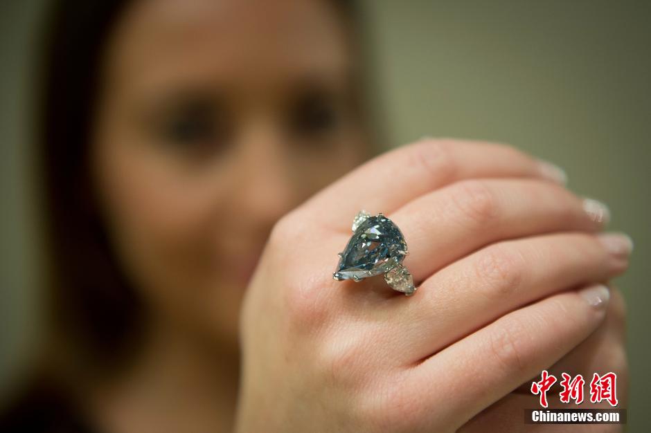 当地时间2014年4月29日,英国伦敦,佳士得拍卖会举行媒体日活动。据悉,今年5月世界最大的蓝钻将在佳士得拍卖,这颗钻石将成为日内瓦珠宝拍卖会的焦点,估价在2100万美元至2500万美元之间。