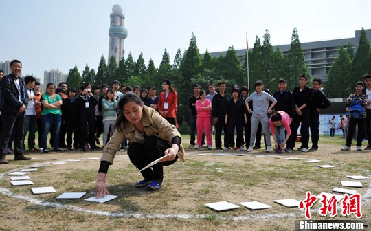 图为青年职工正在参加极速60秒的趣味运动。中新社发 韩苏原 摄