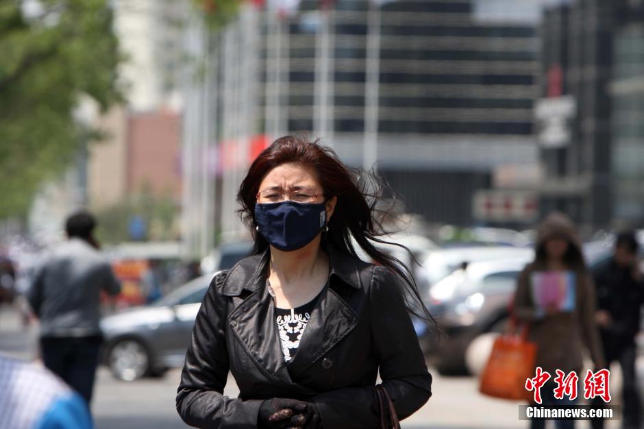 山西太原大风降温 市民“全副武装”出行