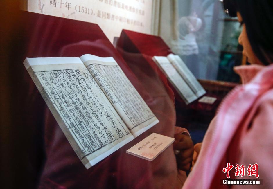 5月4日,一名观众在北京大学图书馆观看善本展。5月3日,北京大学图书馆启动馆藏“大仓文库”善本展,展出两万余册从日本回购的中方典籍。2013年,北京大学筹资一亿多元,从日本回购了2万余册的“大仓藏书”。中央文史馆馆长袁行霈对此评价称,这是100多年来,中国首次大批量回购留存海外的中国典籍。据整理统计,这批典籍经、史、子、集四部皆备。其中还有曾存放于翰林院的《四库全书》进呈本。中新社发 张浩 摄