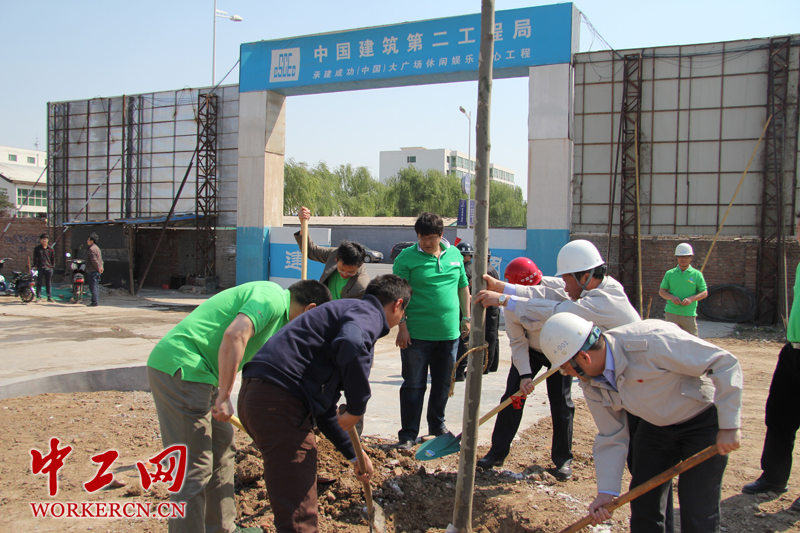 春光明媚,和风微醺。在五四青年节到来之际,2014年5月4日,马来西亚成功集团成功(中国)大广场业主与各承包商及监理、现场农民工兄弟等,200余人齐聚中建二局一公司施工的成功大广场项目部,共同开展了“拥抱春天,播种绿色”的植树活动。一公司成功大广场项目部与业主共同协办了此次植树活动。