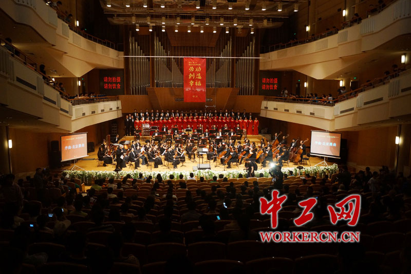5月1日上午,由北京市总工会主办,北京市劳动模范协会、北京职工艺术团承办的《劳动创造幸福》大型交响合唱在北京音乐厅拉开帷幕。市人大常委会副主任、市总工会主席梁伟与来自首都各行各业的劳动模范代表、技能大赛冠军代表、一线职工代表一起,共1000余人欣赏精彩的演出,共度劳动者的节日。 中工网记者 段瑜摄
