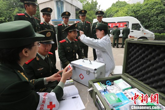 图为医疗小组为战士们诊断病情,并指导他们科学用药。中新社发 张雷 摄