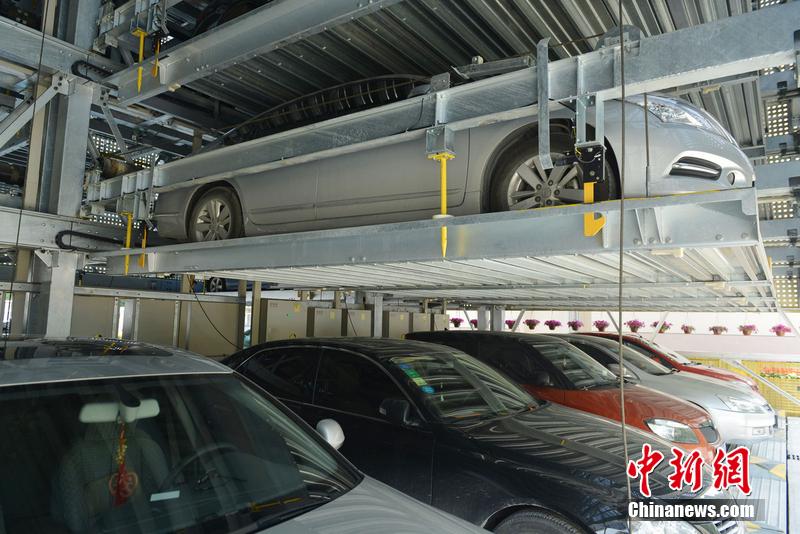 5月5日,浙江省杭州市,拍摄到的“土豪金”立体车库。近日,一座“土豪金”立体车库亮相杭州,引起不少媒体和市民的关注。据了解,这座立体车库由一家民企投资。车库共有7层,可停放小型客车172辆,采用先进的全电脑操控,进出一辆车不超过1分钟。龙巍 摄