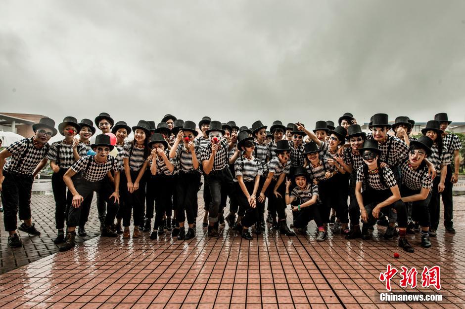 5月5日,广州大学城内迎来了一场特别的毕业合照,毕业生穿上小丑服在学校内合影留念,以特殊的方式告别校园。中新社发 龙宇阳 摄