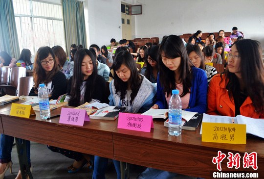5月5日,湖北襄阳湖北文理学院教室内,学生课桌上摆放着五色座位牌。这种防逃课“神器”如手掌般大小,5种不同颜色座位牌上写有学生的学号和姓名,上课时学生必须放在醒目位置,如若逃课,座位牌就会单独被摆放在桌上。中新社发 潘阿文 摄