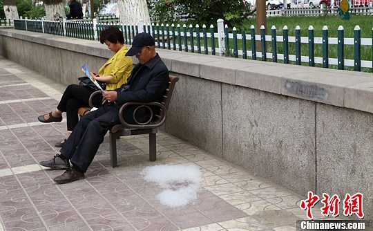 5月7日,兰州市内黄河边的柳絮飞扬,恰似雪花飘飘,草坪中的绿草被大片的柳絮铺盖,看上去像是“落上一层白色的雪花”。飞扬的柳絮为刚进入立夏时节的兰州增添了“几许浪漫”,但是轻飘的柳絮会突然闯进眼睛和鼻孔里,又让人很是烦闷,更为环卫工人的清扫工作带来难度,多了一份愁绪。