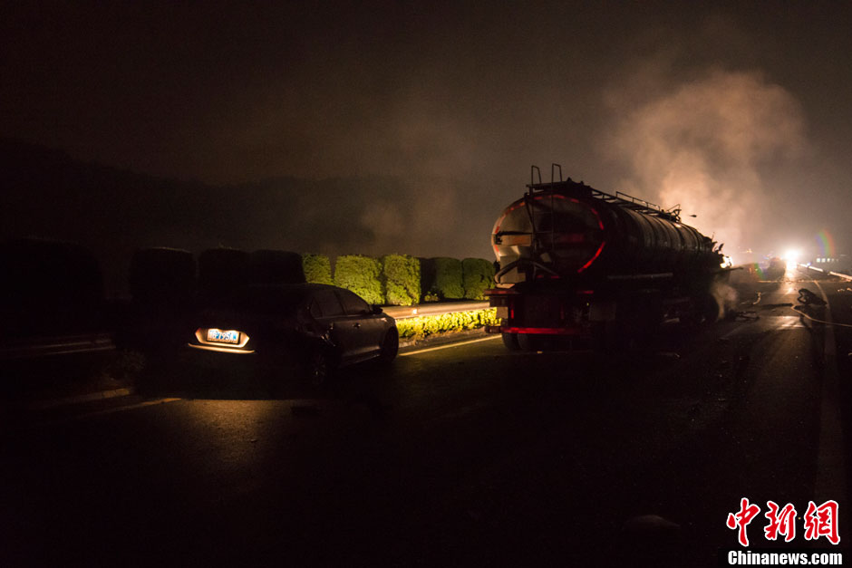 杭金衢高速多车相撞 24吨剧毒氢氟酸泄漏致3人亡