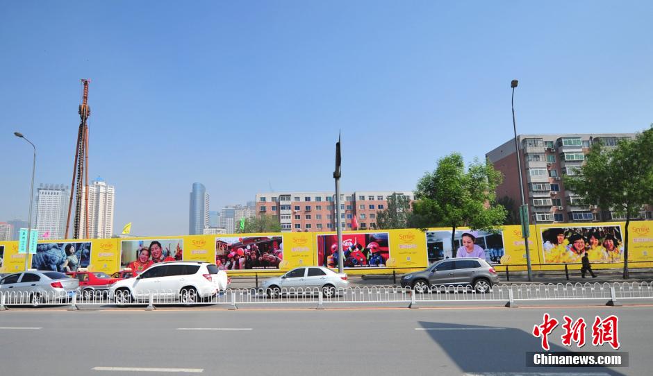 5月8日,沈阳推出“爱上微笑的沈阳”巨幅笑脸墙。当日,是第66个世界微笑日。笑脸墙座落于沈河区热闹路、青年大街至顺通市场之间,利用工地围档沿街展示,全长350多米,是在市民征集、摄影师专题拍摄的3万多幅微笑照片中精选1000多幅优秀作品组合拼接而成。中新社发 于海洋 摄