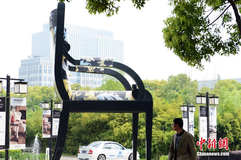 5月8日,一把高约10米的巨型椅子出现在江苏苏州街头,“巨无霸”式的身材吸引了过往路人好奇的目光。中新社发 王思哲 摄