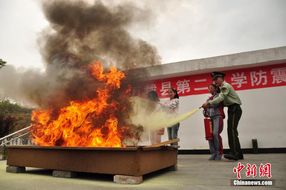 5月8日,江西省万载县第二小学的学生们在进行“防震减灾”应急演练。在第六个全国防灾减灾日来临之际,江西省万载县消防大队走进第二小学,在校园内开展了“防震减灾”应急演练,以提高学生防灾减灾意识和应急自救、互救能力。邓龙华 摄