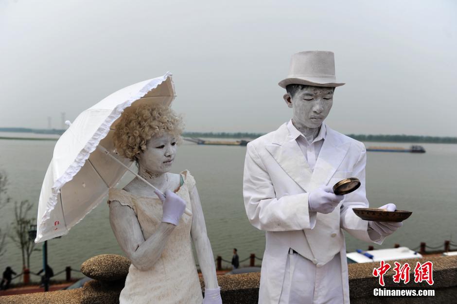 5月8日,以“千年唐风陶城两岸创意文苑”为主题的2104海峡两岸文创名人名企长沙(铜官)行活动,在长沙举行。现场的活人行为艺术,吸引了参观者的驻足观看。工作人员用这种特殊的方式展示长沙铜官窑的发展。据了解,长沙铜官窑始于初唐。盛于中晚唐,终于五代,时间延续300多年。其烧制出来的瓷器品种丰富,美观精致,实用性强。长沙窑是中国釉下彩绘的第一个里程碑,为唐以后的彩瓷发展奠定了基础。 杨华峰 摄