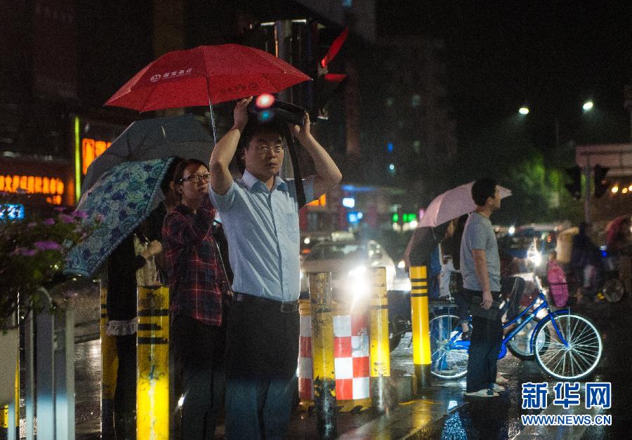 5月8日,行人冒雨在深圳街头行走。广东深圳市气象台于5月8日19时45分在全市范围内发布暴雨黄色预警。 新华社记者 毛思倩 摄