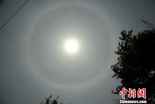 5月9日,山东滨州,天空出现巨大日晕。中新社发 孙自法 摄