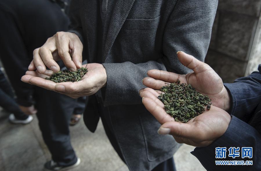 5月10日,两位茶商在福建泉州安溪茶叶交易市场选购茶叶。新华社记者 姜克红 摄