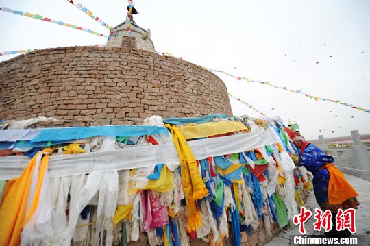 图为甘肃肃北蒙古族自治县举行敖包祭祀活动。中新社发 杨艳敏 摄