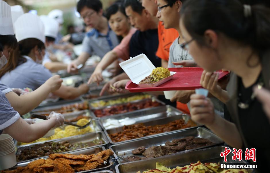 随着介绍中国各地美食的电视节目《舌尖上的中国》的热播,各种与美食相关的活动开展的如火如荼。5月16日,南京东南大学在四牌楼校区沙塘园食堂内举办第一届美食文化节,来自该校总务处饮食中心莘园、香园、医林等5个食堂的大厨齐聚一堂,拿出看家厨艺精心烹饪,为大学生们送上色香味俱全的美食盛宴。 泱波 摄