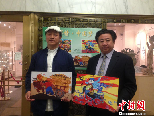 5月21日开始,中国农民画将在纽约联合国总部进行为期三天的展出。中新社发 阮煜琳 摄