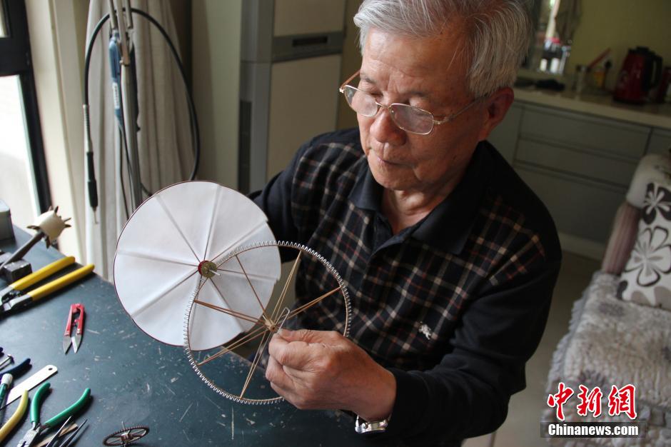 现年77岁的张天伟老人是陕西省非物质文化遗产项目张氏风筝制作技艺代表性传承人,以制作动态风筝闻名。所谓动态风筝,就是在传统风筝的基础上增加风力机械传动装置,以自然风为动力,经齿轮等巧妙机构带动风筝上某些部位变化活动。图为手工制作风筝。阿琳娜 摄