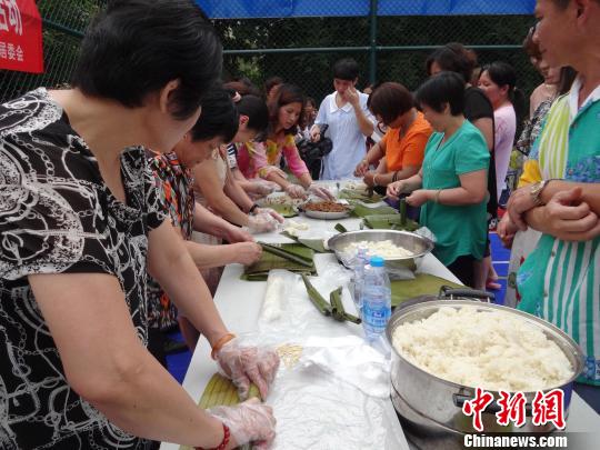 图为归侨侨眷包粽子现场。 陈文婷 摄
