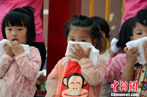 5月29日,幼儿园小朋友参与防火培训。中新社发 钟欣 摄