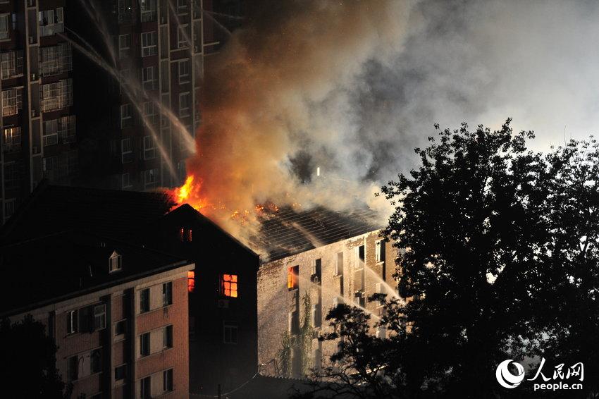昨天傍晚6点左右,西城区半步桥一栋4层楼房起火,大火燃烧将近3个小时,将顶层房顶烧塌。北京消防出动61部消防车赶赴现场进行扑救,至昨晚8点53分将火扑灭。事故未造成人员伤亡。