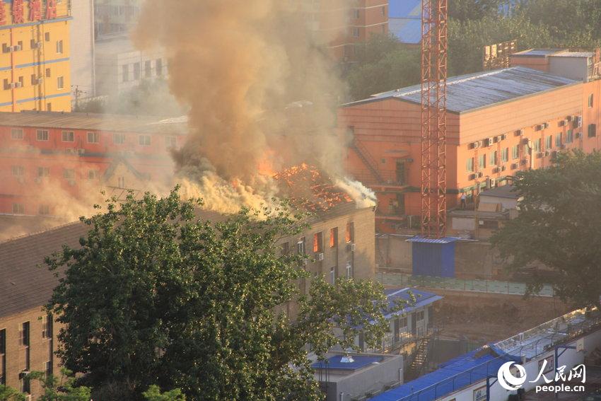昨天傍晚6点左右,西城区半步桥一栋4层楼房起火,大火燃烧将近3个小时,将顶层房顶烧塌。北京消防出动61部消防车赶赴现场进行扑救,至昨晚8点53分将火扑灭。事故未造成人员伤亡。