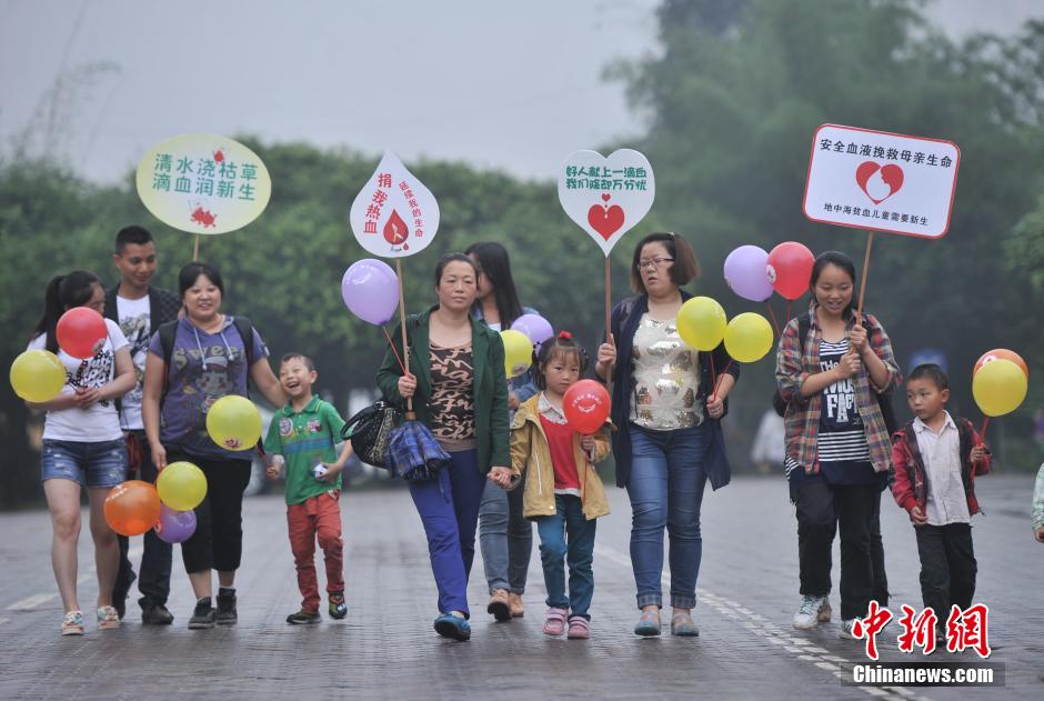 6月13日,数位地中海贫血儿童患者在家人的带领下,与志愿者们在洋人街举牌宣传“地贫”疾病。来自重庆长寿、北碚、璧山、永川等区县的多名“地贫”患儿与志愿者和家人在洋人街举着“地贫儿童需要新生”、“捐我热血延续我的生命”、“好人献上一滴血、我们除却万分忧”等标语,呼吁市民关注“地贫”疾病并防止“地贫”患儿的出生。陈超 摄