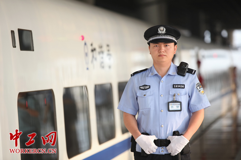 6月18日,武汉至黄石、黄冈两条城际铁路将同时开通。武汉铁路乘警在站台立岗接送旅客。