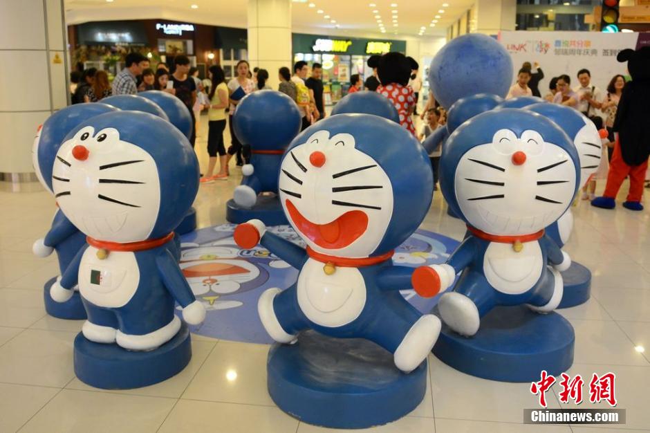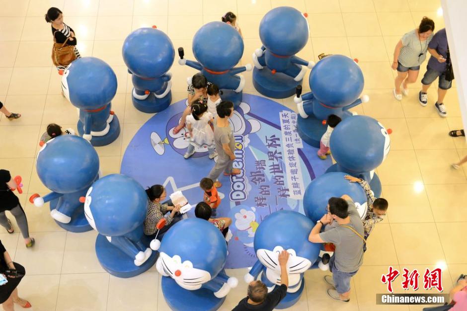 6月29日下午,三十二个憨态可掬的蓝胖子“哆啦A梦”亮相苏州邻瑞广场,吸引了众多市民的目光。据了解,此次展出的蓝胖子每个都超过一米,手持数十件不同的秘密道具,并分别代表着巴西世界杯决赛的三十二个不同球队,陪粉丝们共同度过这个属于足球的夏天,唤起众哆啦A梦粉丝们的童年美好时光。王思哲 摄