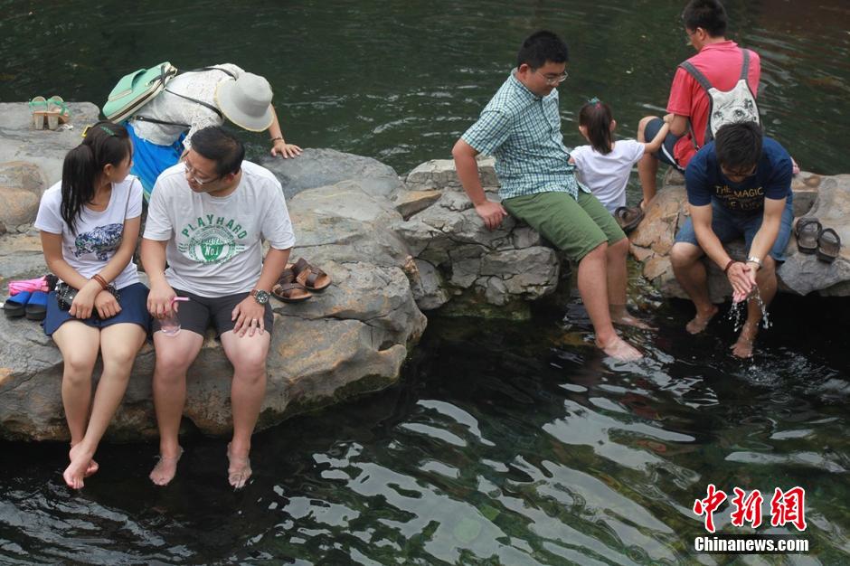 济南名泉又现“泡脚客” 享受清凉无视警告