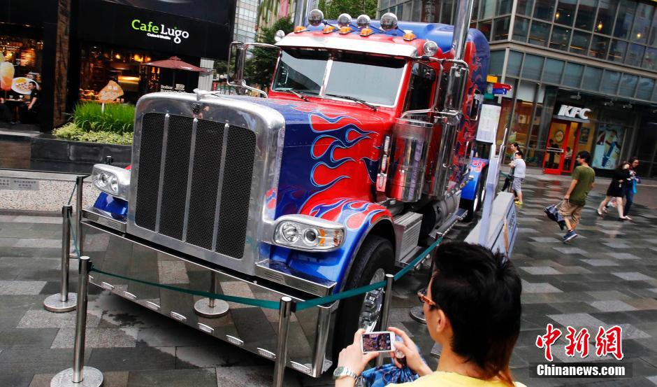 7月1日,空降上海街头的汽车人“擎天柱”、“大黄蜂”吸引了众多路人驻足欣赏。随着《变形金刚4》的热映,一股变形金刚热正在上海悄然掀起。汤彦俊 摄