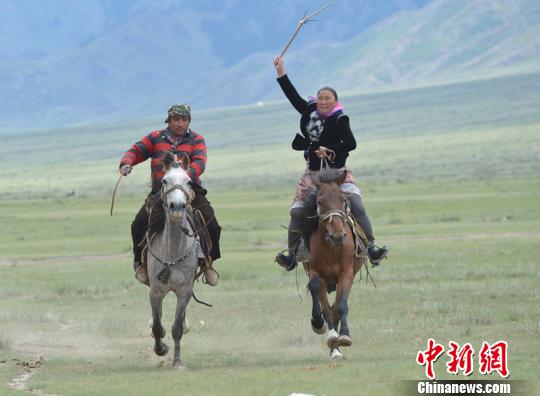 图为在东天山巴里坤草原上举办一年一度的农牧民运动会。张建刚 摄