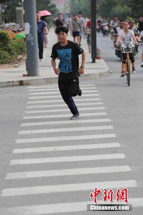 7月2日,山西太原并州路桥东街口,一条只有1.5米宽的斑马线仅能容纳两人并排行走。根据中国《公路交通标志和标线设置规范》,人行横道线的最小宽度应为300厘米,该路口的人行横道线仅为最低标准的一半。中新社发 武俊杰 摄