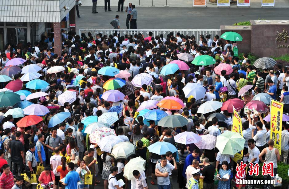 7月6日,家长场外候考。当日,济南两所中学举行小学应届毕业生“小升初”测试,众多家长冒着酷暑在场外候考,场面堪比高考。中新社发 张勇 摄