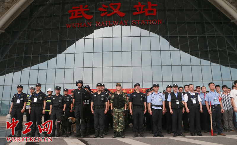 7月3日,武汉火车站西车行平台,“高铁2014”反恐综合实战演练,参战单位集结到位(赵军摄)
