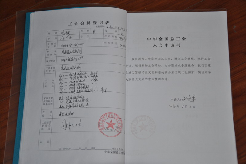 6月13日至14日,湖北省总工会调研组到襄阳抽查基层工会建设大调研情况,随机抽查了11家基层工会进行实地查看,在所到企业查看档案材料时,无一例外地看到了职工入会申请书和会员登记表,检查组领导对此做法给予了充分肯定。多年来,为加强基层工会组织规范化建设,增强工会会员意识,襄阳市总工会在指导督促企业组建工会过程中,始终坚持新发展入会的职工必须填写入会申请书和会员基本情况登记表,特别是推进企业普遍建会三年规划实施期间,新成立的工会组织,更是从要求职工填写入会申请书和会员信息登记表入手,抓基层工会规范组建。