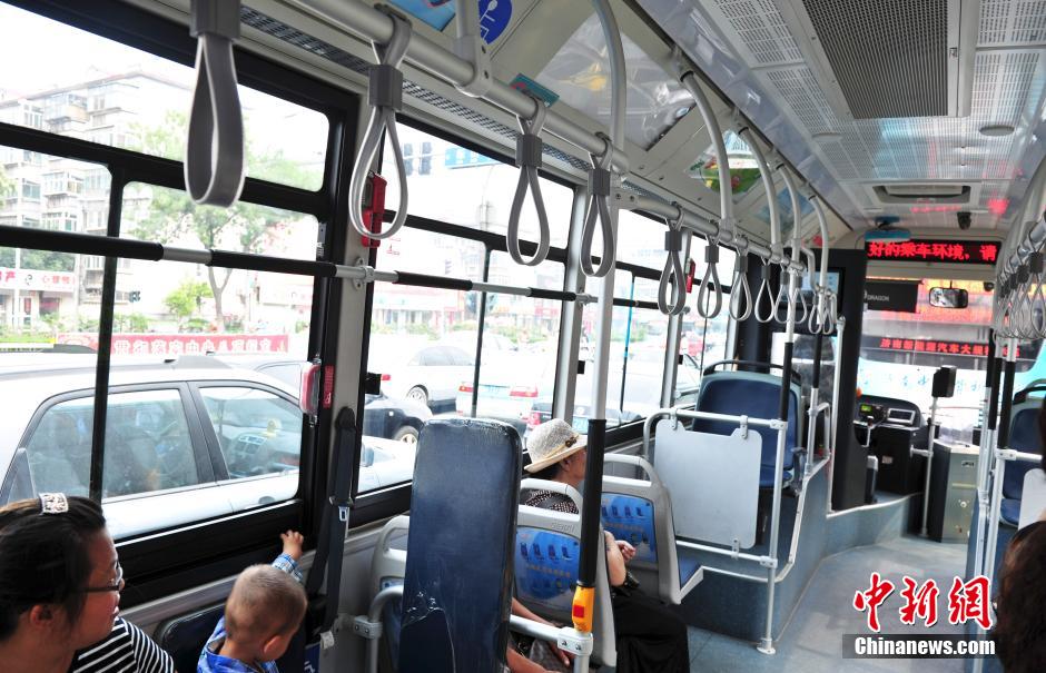 7月8日,空调公交车车窗更换为推拉车窗。日前,济南公交总公司迅速对所属4700多辆公交车进行彻底排查,为每辆公交车前后轮附近车窗配备安全锤,将所有公交车辆车窗改造成推拉式车窗,使乘客在紧急情况下,可以手动开窗迅速疏散。中新社发 张勇 摄
