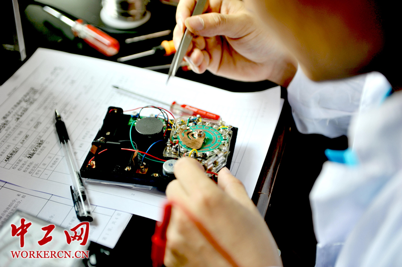图为选手在进行万用表的检测。中工网通讯员 鲍赣生