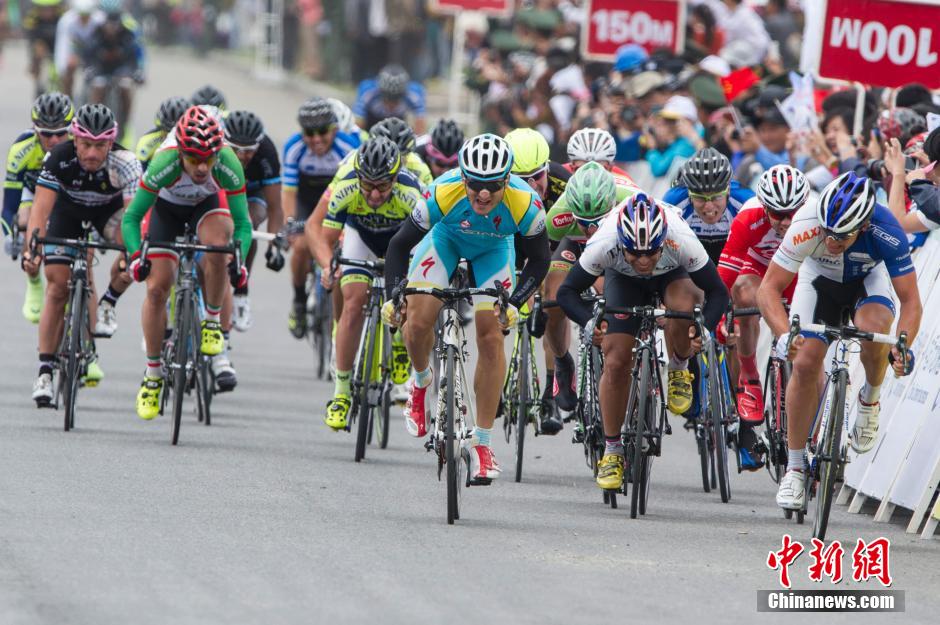 7月9日,环青海湖公路自行车赛第四赛段从西海镇出发,车手围绕素有“中国最美湖泊”的青海湖绕行至终点黑马河,赛段全长204公里,选手们在阴雨低温天气中艰难骑行。经过4小时48分骑行,来自哈萨克斯坦阿斯塔纳队本法托获本赛段第一,并一举将冲刺“绿衫”拿下,伊朗大不里士石化队麦迪、美国联合保健队佛斯特分别获赛段二、三名。象征总成绩第一“黄衫”仍由乌克兰科尔斯队波利佛大掌控。中新社发 胡贵龙 摄