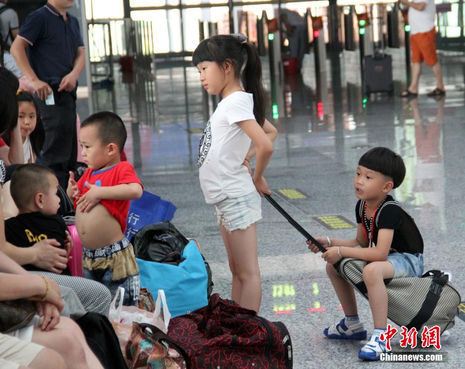 7月9日,铁路宁波站迎来一大波萌娃,开始“暑期行”。暑假来临,以旅游观光、休假疗养、学生客流为主的出行高峰逐渐形成。据悉,学生客流高峰主要集中在7月上旬学生放假和8月中下旬入学返校。中新社发 林波 摄